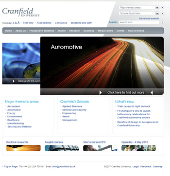 DescriptionThis redesign was to replace the page that had been in place since 1996 and was no longer doing a satisfactory role. The biggest problem with the old site was that it relied on the user knowing which school/department they needed to see. This design changed that and focused on what the user wanted and not the needs of the internal market. It was, as you can imagine, about as popular to start with as a cat in an aviary! However when web traffic went from 300,000 page impressions a month to about 1.1 million - suddenly it was a great idea, that they'd though of! ;-) !!! The second design was produced using a basic template from design firm bit10. The functionality is the same as the first redesign but uses text as images, no Java and a few 'banner adverts' to promote key areas. Loads faster, simpler HTML and more disabled friendly. Biggest controversy? - the crest has gone!!!! Update 2007: Site moved into Rhythmyx CMS and as a result a new design has been produced. This was developed by The Roundhouse and has replaced this version. My involvement in the design and build is not as 'hands-on' as it once was. This work is reflected in version three of the homepage which shows an 'iconic' image of the university as well as the new visual identity which is best shown with the font, colour, rounded courses and the lozenge overlays to the right. Update 2009: The final version shows a flash carousel in place of the banner and the inclusion of a 'what's new' section which gave me options to promote things within the homepage. This will be a short-lived homepage because the flash is not quite what was expected it to be and is unpopular internally. Downside is traffic is up - caused in part to the school links being higher up, 'above the fold'. |